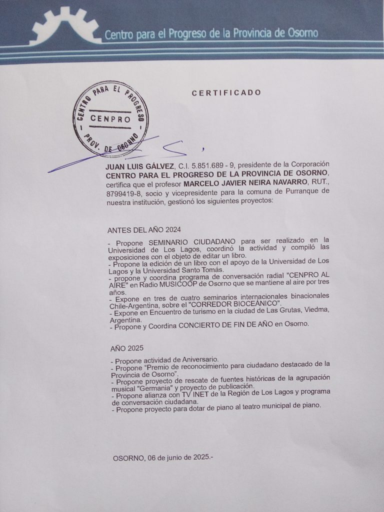 Algunos proyectos desarrollados en el Centro Para el Progreso de la Provincia de Osorno Junio 7, 2025