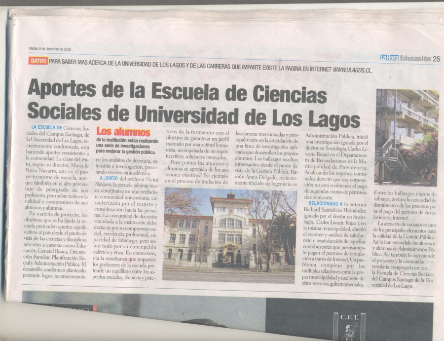 Experencia laboral, ULAGOS, Santiago