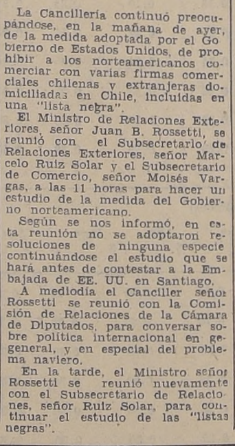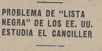 Repositorio. Lista Negra. Canciller Diciembre 28, 2025 Problema de ´lista negra´ de los EE.UU. estudia el canciller, La Nación, 20 de julio de 1941, p. 18.