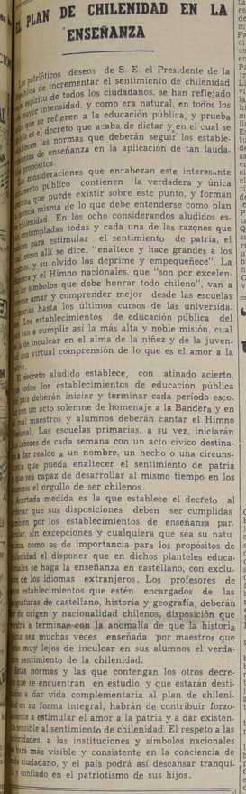 Plan de chilenidad en la enseñanza, Diario La Nación, lunes 28 de julio de 1941, pág. 21.