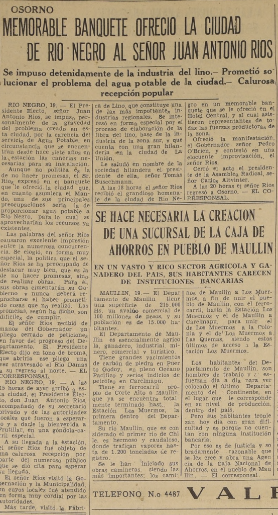 Repositorio. Fábrica de lino. Río Negro Diciembre 30, 2025 Diario La Nación, viernes 20 de febrero de 1942, pág. 8.